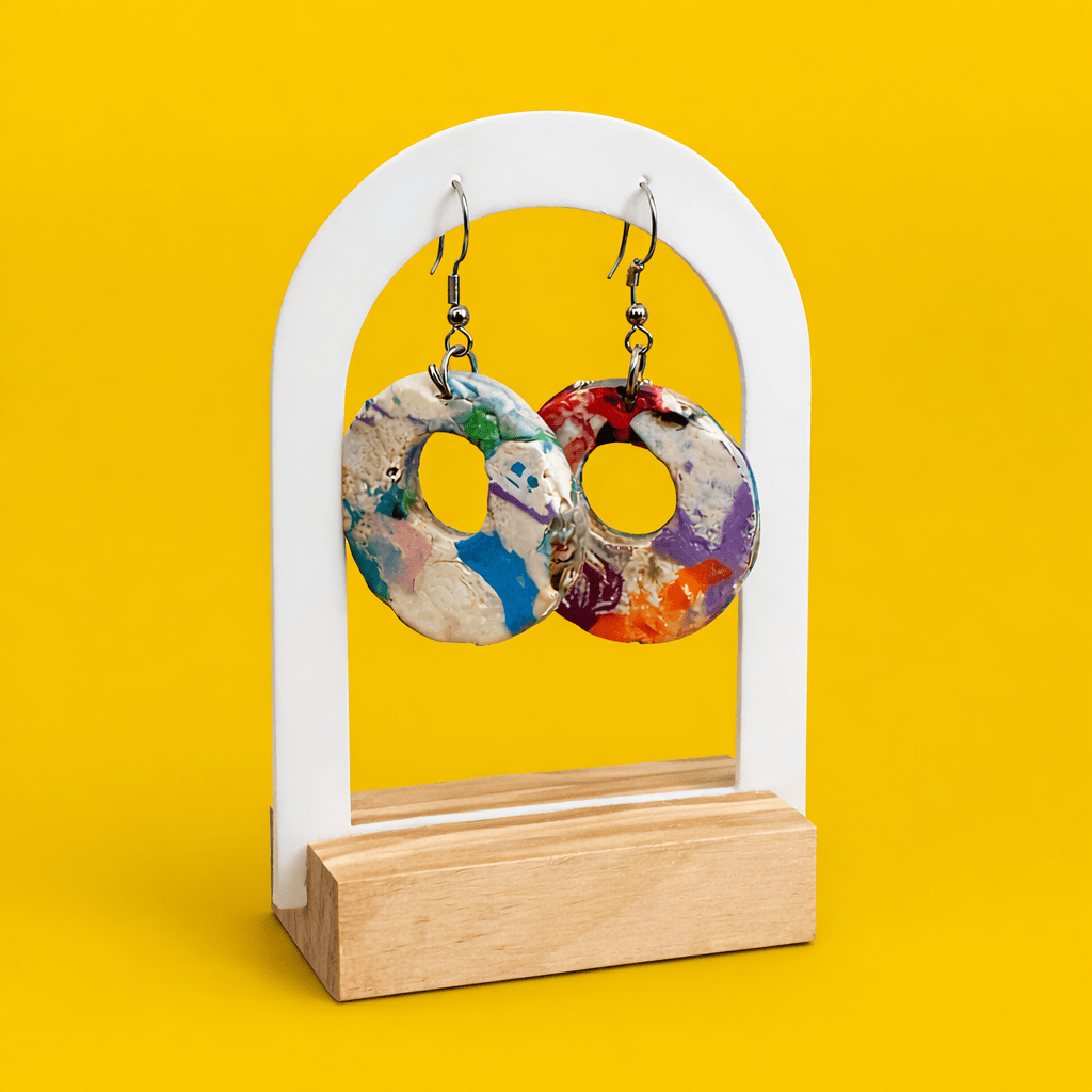 ⚠️ ATTENZIONE: OGNI PEZZO È UNICO La forma degli orecchini è quella che vedi in foto, ma le sfumature e i colori variano sempre. Ogni paio viene fuso a mano con il materiale disponibile al momento: riceverai una colorazione esclusiva e irripetibile, diversa da quella dell'immagine d'esempio.